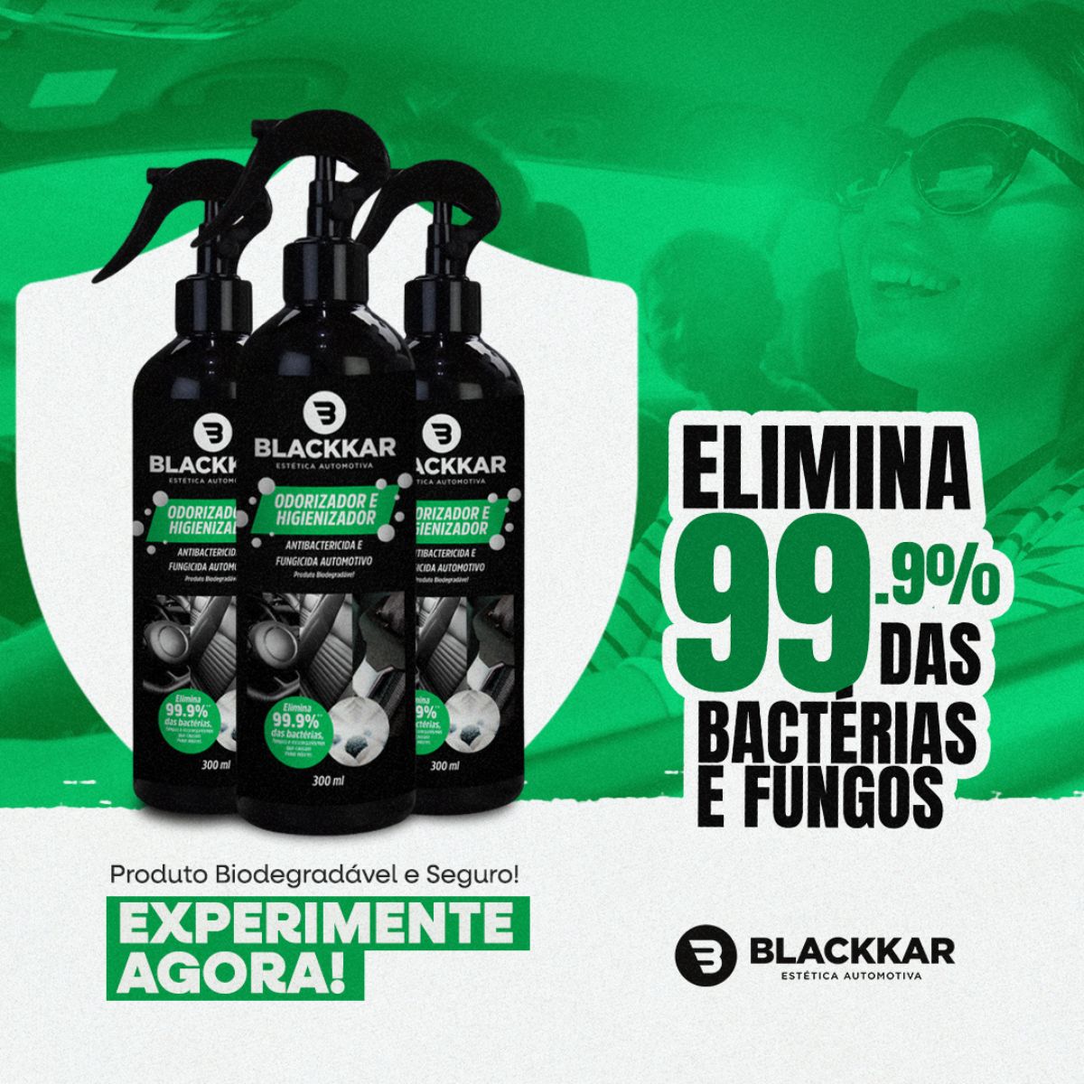 O Odorizador e Higienizador Blackkar é a solução ideal para manter seu carro higienizado e com cheiro agradável por muito mais tempo. Com uma fórmula antibactericida e fungicida, ele elimina até 99,9% das bactérias, fungos e microrganismos que causam mau odor, garantindo um ambiente limpo e seguro.